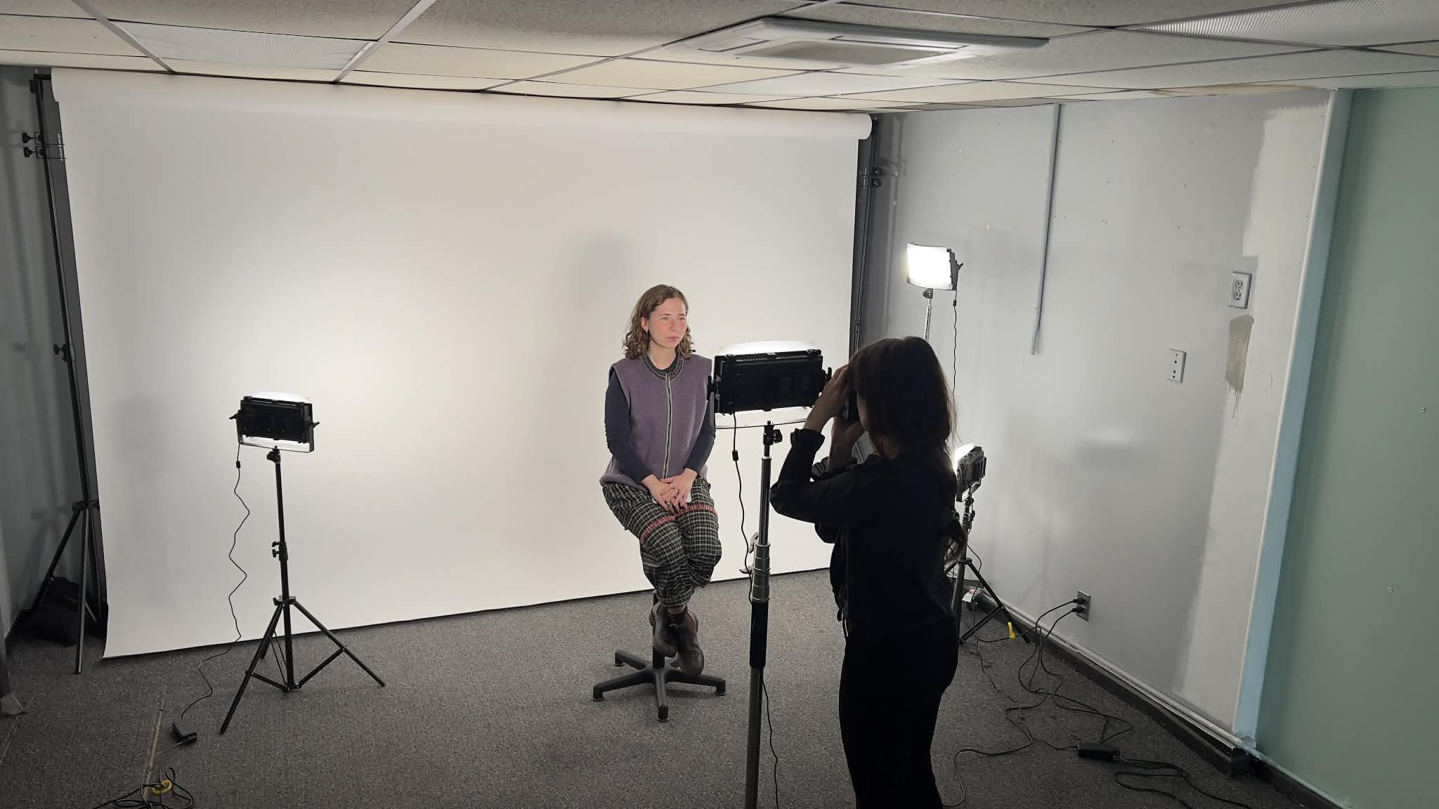 Featuring an ultra-wide 12ft back-drop in white, black, or green screen.
